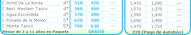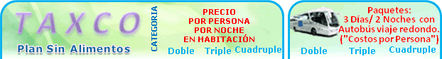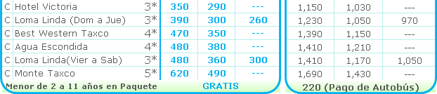 por persona en moneda nacional. Nota: No incluye propinas a maleteros y camaristas los hoteles Victoria, De la Borad y Posada de la Mision |